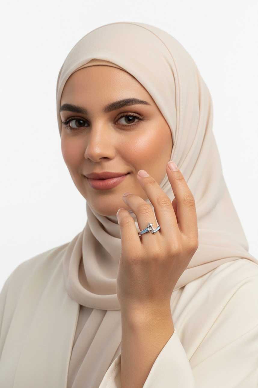 Shine with subtle elegance — this Star Silver Ring features a delicate blue stone embraced by tiny silver stars, symbolizing hope and serenity. Its adjustable band ensures a comfortable fit, perfect for both everyday wear and gifting.
